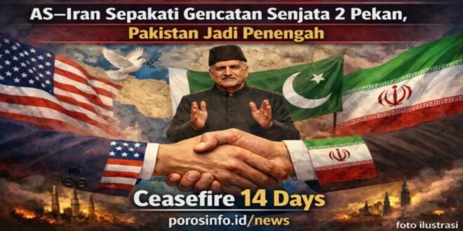 POROS INFO kesepakatan gencatan senjata sementara selama dua pekan antara Amerika Serikat dan Iran, yang dimediasi oleh Pakistan, mencakup sepuluh poin utama, dengan dua poin penting yang menjadi inti dari perjanjian tersebut, Kamis (09/04/2026).