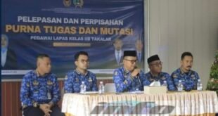 TAKALAR | POROS INFO.ID – Lembaga Pemasyarakatan (Lapas) Kelas IIB Takalar menggelar kegiatan pelepasan dan perpisahan bagi satu orang pegawai purna bakti serta dua orang pegawai yang mendapatkan mutasi tugas, Rabu, 17 Desember 2025.Kegiatan tersebut berlangsung khidmat dan penuh kehangatan …
