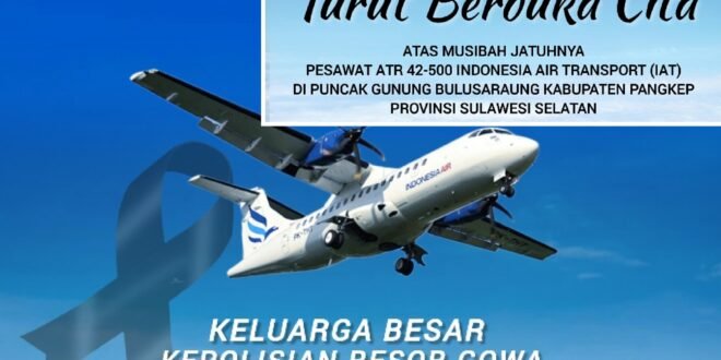 Gowa,Sulsel,poroainfo.id Keluarga Besar Kepolisian Resor (Polres) Gowa menyampaikan turut berduka cita yang mendalam atas musibah jatuhnya pesawat ATR 42-500 milik Indonesia Air Transport (IAT) di Puncak Gunung Bulusaraung, Kabupaten Pangkep, Provinsi Sulawesi Selatan, pada Jumat, 17 Januari 2026.