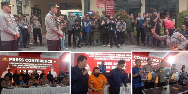 Dalam kunjungannya Kapolda susel ini juga melakukan press conference Pengungkapan tindak pidana membawa lari anak dan persetubuhan serta kekerasan terhadap anak.