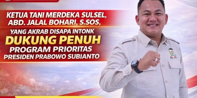 Ketua Tani Merdeka Sulsel, Abd. Jalal Bohari, S.Sos, yang akrab disapa Intonk, menilai bahwa berbagai isu negatif maupun hoaks yang beredar terkait kebijakan Presiden Prabowo Subianto tidak mencerminkan kondisi yang sebenarnya di lapangan. Menurutnya, informasi yang beredar kerap tidak berdasar dan cenderung menggiring opini publik secara tidak objektif.