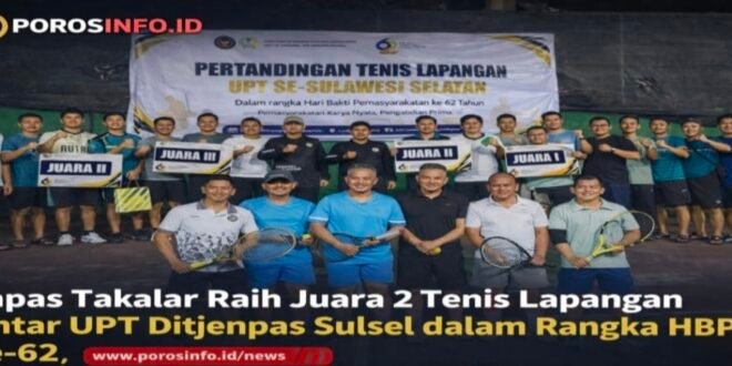 TAKALAR | POROS INFO.ID – Lembaga Pemasyarakatan (Lapas) Kelas IIB Takalar kembali menorehkan prestasi membanggakan. Tim tenis lapangan Lapas Takalar berhasil meraih Juara 2 dalam pertandingan antar Unit Pelaksana Teknis (UPT) Direktorat Jenderal Pemasyarakatan se-Sulawesi Selatan, Kamis (02/04/2026).