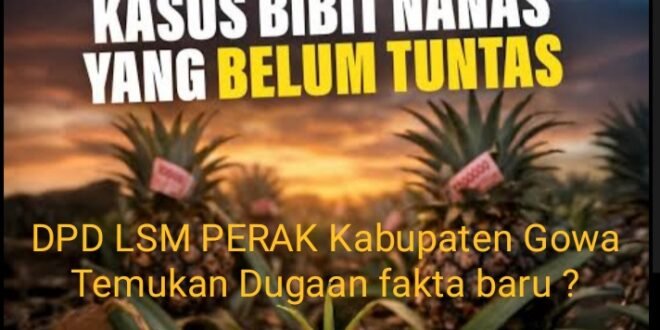 :MAKASSAR, porosinfo.id. – 20 April 2026, DPD LSM PERAK Kabupaten Gowa Taufan yang juga sekaligus Plt Koordinator Divisi Investigasi dan Pengumpulan Data LSM PERAK Indonesia mengungkap fakta baru kasus dugaan korupsi bibit nanas Rp60 miliar. Keempat unsur pimpinan DPRD Sulsel periode 2019-2024 mengaku tidak pernah tahu, tidak membahas, dan tidak menganggarkan program tersebut.