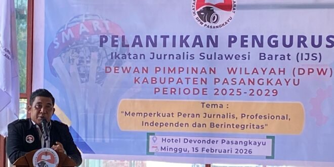 PASANGKAYU, Porosinfo.id – Di balik seremoni pelantikan pengurus DPW IJS Pasangkayu, terselip narasi perjuangan tentang marwah profesi jurnalis di Sulawesi Barat. Ketua Umum DPP IJS Sulbar, Irham Aziz, S.I.P., dalam sambutannya memaparkan kilas balik sejarah terbentuknya organisasi ini yang bermula dari kegelisahan dan kerentanan keamanan para pekerja media di lapangan.