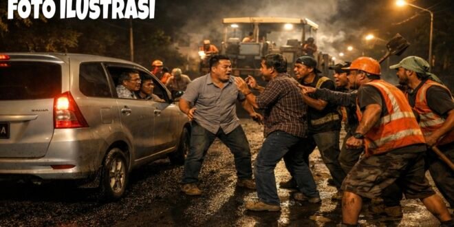 TAKALAR | POROS INFO.ID – Tanpa adanya tanda larangan melintas maupun papan informasi terkait pekerjaan proyek pengaspalan, dua warga Galesong, Kabupaten Takalar, nyaris menjadi sasaran amukan para pekerja proyek di Jalan Raya Galesong, tepatnya di wilayah Palalakkang, Kamis malam sekitar pukul 22.00 WITA (12/03/2026).