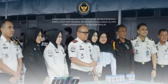 TAKALAR | POROS INFO.ID – Puluhan petugas dan Warga Binaan Lembaga Pemasyarakatan (Lapas) Kelas IIB Takalar jalani tes urine, Rabu (7/1). Kegiatan ini dilakukan sebagai upaya deteksi dini sekaligus komitmen memberantas peredaran narkoba di dalam lingkungan Lapas.